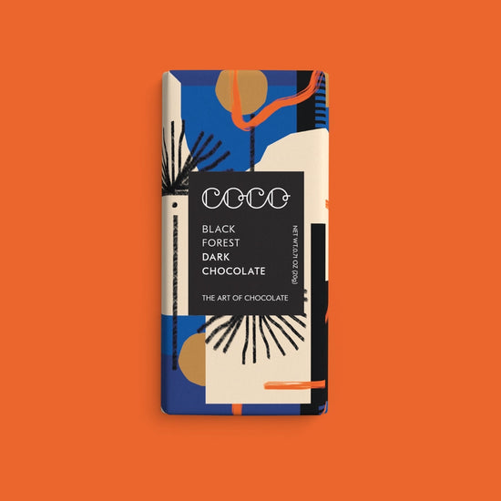 The iconic and classic taste for the season. Indulgent dark chocolate with delightful natural cherry flavour that evokes one of the most emblematic desserts made in history. Cocoa Origin: Colombia Weight: 20g Artist: Atelier Hola Lou