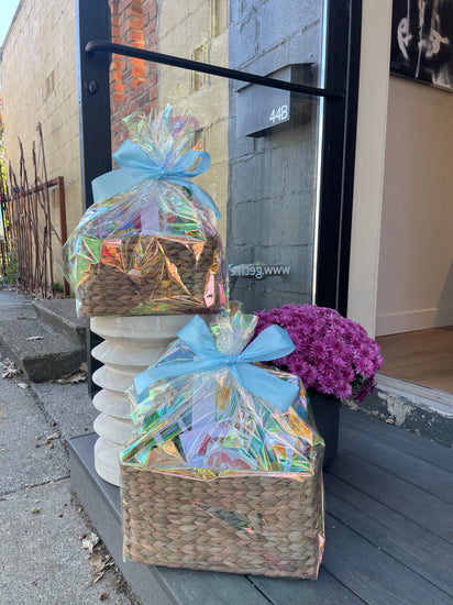 Your basket will include a curated assortment of the following type of items totally the dollar value of $150 from our shop and local vendors. The image is an example of what your basket will look like and is not an exact replication for this listing. The exact items will be selected base on our current stock. This item is for pick up only at our Five Points Location.